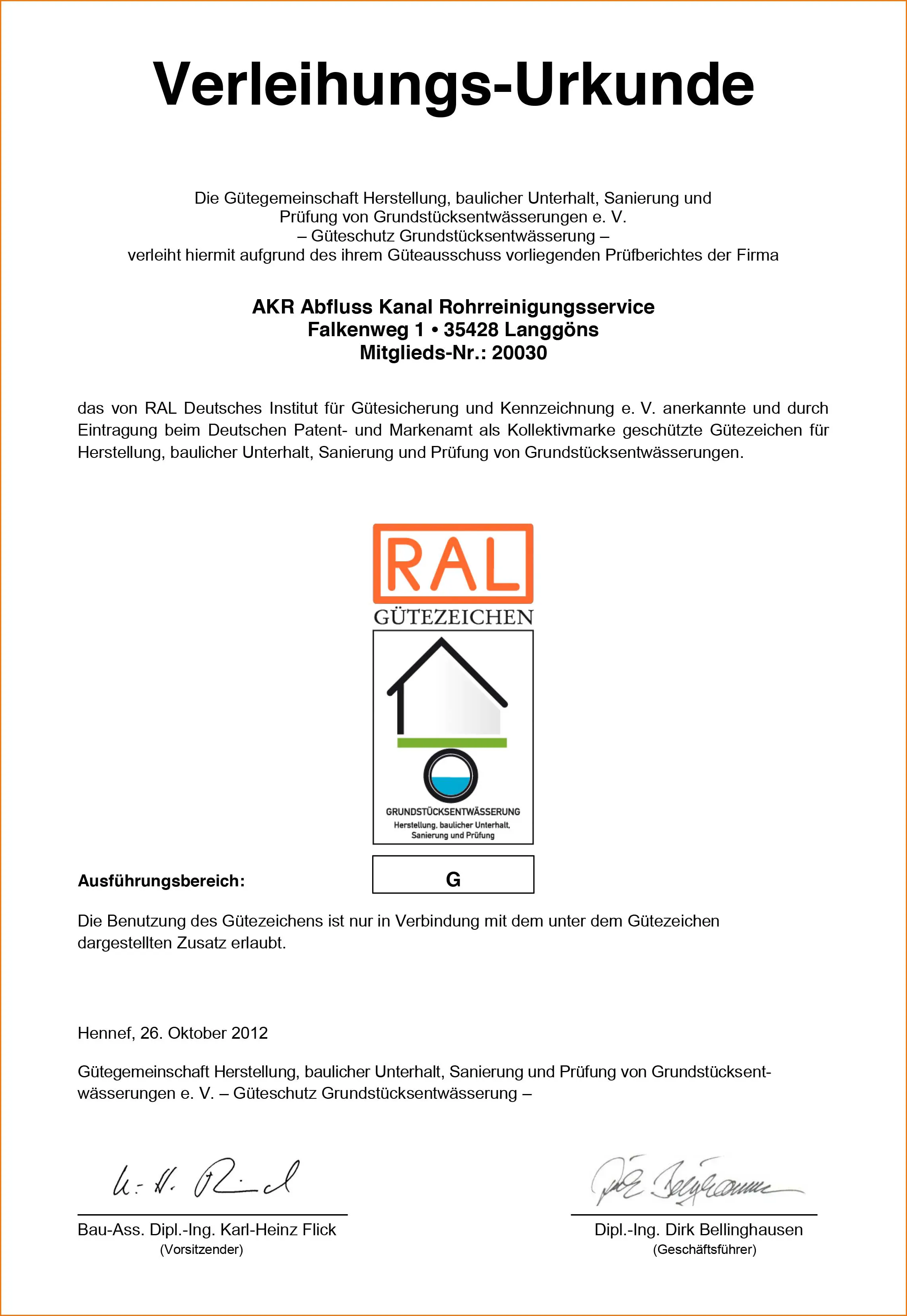 Belegt unsere offizielle Aufnahme in den Güteschutz Kanalbau e.V.